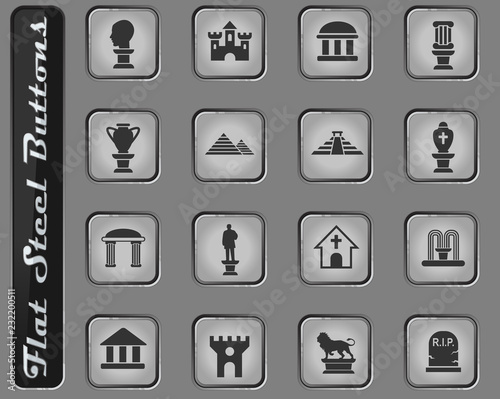 flat, steel, buttons, icon, vector, symbol, historical building, lock, fortress, fountain, pyramid, ballot box, vase, church, arch, historical building, lion, grave, column