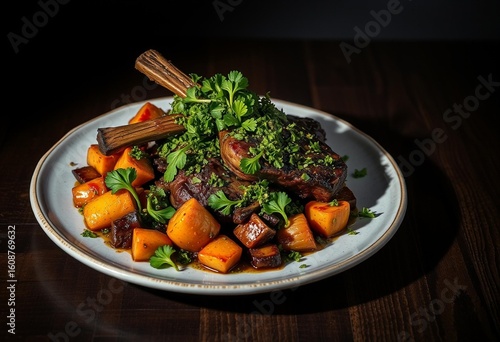 meat, kitchen, plating, twirling, atmospheric, macro, culinary, celery, composition, shot, storytelling, clean, food, dish, aesthetic, eco, artistic, narrative, vegetable, seasonal, short, minimalist, comfort, root, arrangement, sauce, cookery, dark, moody, vegetable, waste, subtile, rustic, wood, editorial, styling, steam, ingredient, presentation, modern, rib, leaf, motion, sustainable, natural, atmosphere, herbaceous