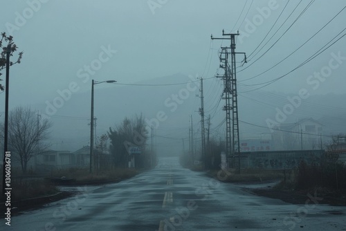 moody, foggy, street, power, line, distant, silhouette, atmospheric, mysterious, urban, perspective, dramatic, eerie, solitude, shadow, soft, cinematic, contrast, quiet, storytelling, nostalgia, depth, monochrome, exploration, night, abandoned, environment, city, old, dark, deep, suspense, haunting, silence, photo, tension, minimal, mystery, composition