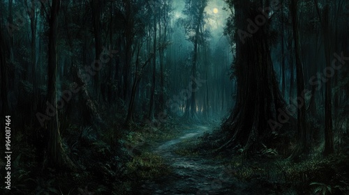 moody, eerie, twilight, forest, mysterious, fantasy, nature, glow, dark, dusk, light, tranquil, evening, natural, skittish, silence, solitude, night, tree, timberland, surreal, contrast, ambience, landscape, illuminated, fog, aethereal, enigmatic, creepy, mystery, background, outdoors, gloaming, atmosphere, foliage, mystical, lantern, hidden, figure, fern, explorer, dim, cloaked, cloak, pathfinder, undisturbed, scene, haunted