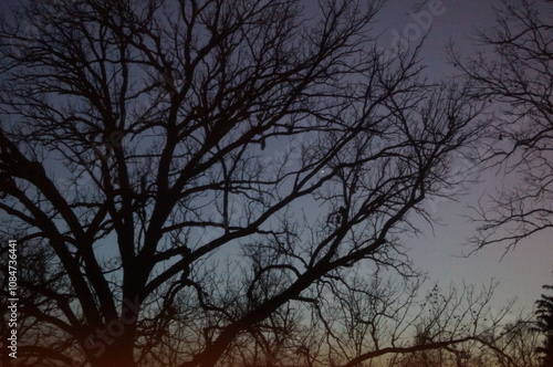 tree, sky, sunset, winter, moon, blue, cloud, wood, night, evening, dark, landscape