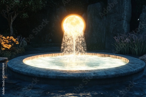 fountain, moon, sky, light, moonlight, water, park, building, architecture, fantasy, fantastic, fancy, fiction, magical, creative, surrealism, epic, mythology, mysticism, realism, futuristic, night, tree, ambience, calmness, scenery, summer, landscape, evening, beauty, nature, relaxation, serenity, illumination, city, quiet, stillness, design, night time, aesthetic, twilight, peaceful, casual attire, escape, romantic, sight, charme