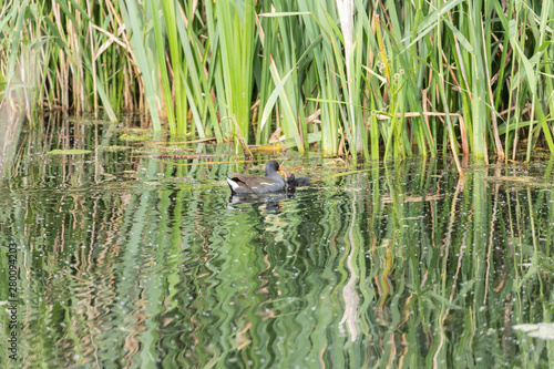 Moorhen and chick