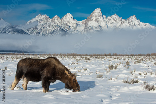 snow, winter, animal, mountain, nature, moose, landscape, cold