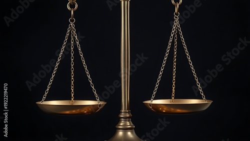 morality. Close-up view of balanced justice scales with metallic details against a dark neutral studio background. event programs.