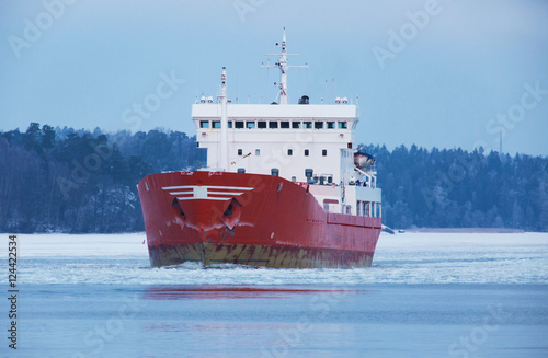 MORKO SWEDEN 23 January 2016. Freight ship in cloudy winter weather.