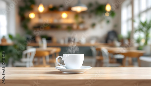 Morning Bliss in a Warm Cup of Coffee. blurred cafe background