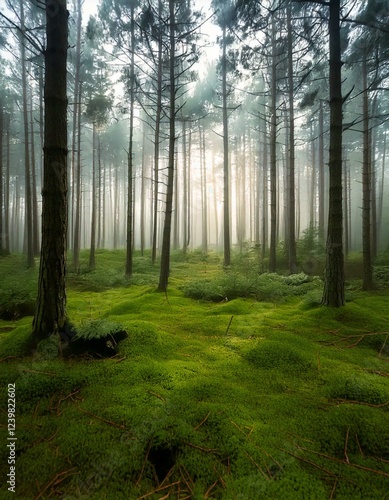 morning in a dense pine forest