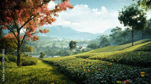 environment, garden, fresh, background, sky, nature, tree, landscape, light, leaf, beauty, mountain, tea, green, farm, agriculture, plant, tropical, growth, field, beautiful, organic, plantation, farmland, morning, hill, highland, rural, countryside, asia, closeup