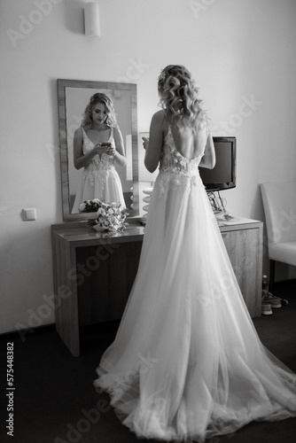 beige, bouquet, bride, brown, creation, day, dress, flower, forever, girl, coiffure, image, inside, joy, love, mirror, morning, summer, together, wedding, white, young