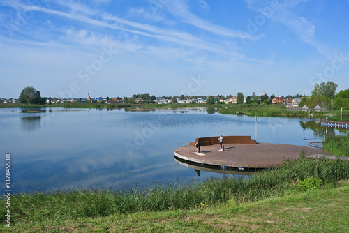 russia, lake, water, landscape, sky, nature, shore, summer, travel, morning, tranquil, calm, relaxation, park, duck pond, green, vacation, beach, day, cloud, wooden
