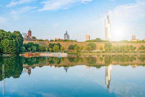Morning Scenery of Ming City Wall of Xuanwu Lake in Nanjing, Jiangsu Province, China