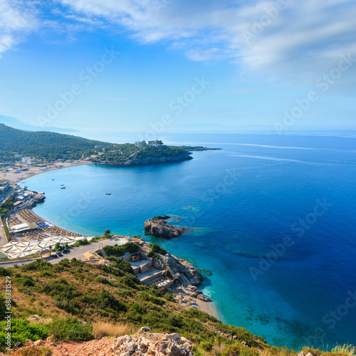 Morning summer Ionian sea coast top view with beaches, Albania
