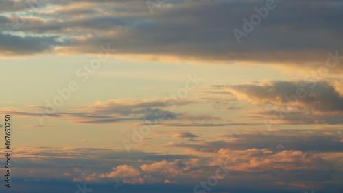 Morning sunrise through clouds. Beautiful sunrise background after rain with clouds. Timelapse.