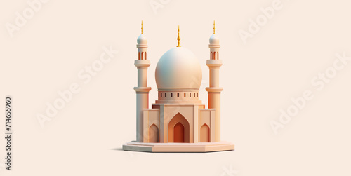 Mosque building realistic 3d design isolated, one sand color shape with golden top for Ramadan Kareem