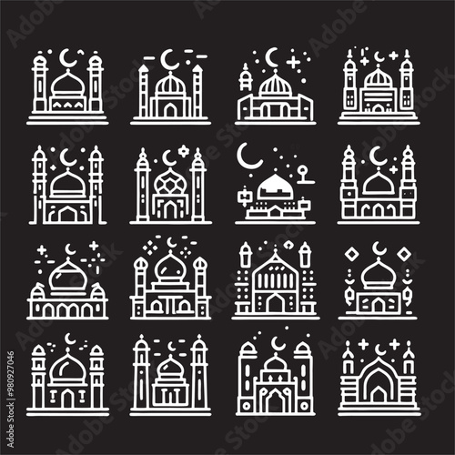 vector, mosque, islamic, icon, symbol, islam, design, muslim, arabic, culture, ramadan, illustration, isolated, background, arab, religion, arabian, architecture, holy, graphic, signs, silhouette, art, religious, traditional, pray, logotype, flat, building, simple, moon, celebration, white, element, greeting, turkey, modern, masjid, banner, allah, line, prayer, outline, minaret, abstract, faith, template, dome