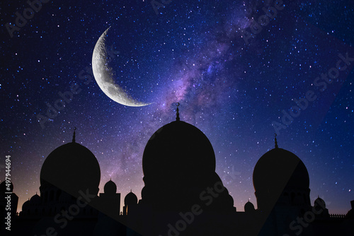 mosque silhouette at night Ramadan and Eid Mubarak background