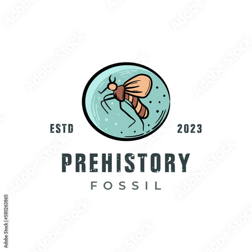 mosquito fossil pre history logo icon, dry insect in amber hand drawn vintage vector illustration.