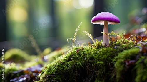 moss, nature, champignon, mushroom, illustration, forest, purple, green, surrounding, calmness, serenity, beauty, solitary, tall, cap, shade, striking, lush, quiet, image, photograph, standing, sense, contrast, beautiful, alone, peaceful, wild, growth
