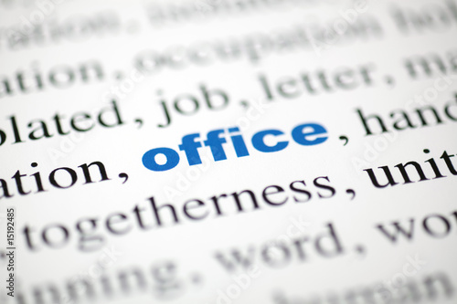mot office Bureau(Fonctions) texte flou mot bleu