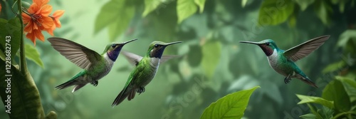 Moth hiding behind a leaf as the green hummingbird approaches its favorite flower, moth species, insect, camouflage