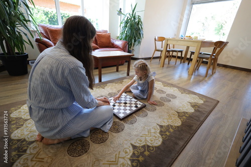 friendship, board game, children, chessboard, toy, bonding, sitting, play, game, cute, female, chess, people, lifestyle, daughter, fun, little, woman, young, mother, together, childhood, home, family