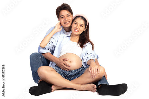 pregnant, belly, family, couple, isolated, white background, tummy, pregnancy, motherhood, mother, parenthood, baby, happy, asian, white, together, lover, love, hand, man, woman, wife, smile, husband, sitting, partner, portrait, human relationships, romantic, beautiful, married, happiness, birth, embracing, hugging, infant, bonding, hugs, joy, father, cute, touching, mother, pretty, childbirth, togetherness, lifestyle