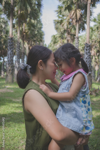 mother and child girl playing with smile