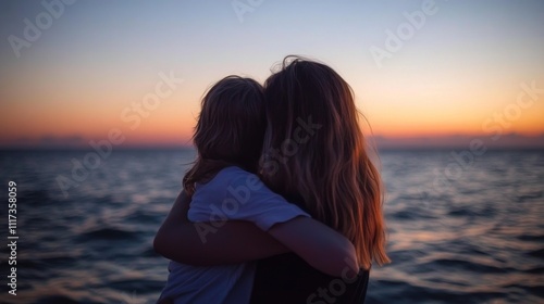 Mother and child silhouette standing together, symbolizing the unbreakable bond and nurturing love between a parent and their offspring, capturing the essence of family unity and emotional connection.