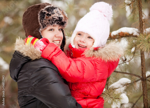 woman, family, 2, motherhood, parenting, eltern, children, female, girl, children, happy, happiness, fun, outside, winter, forest, park, affection, young, people, smile, laugh, cheerful, joy, joyful, snow, casual attire, caucasian, leisure, recreation, sport, active, childhood, lie, snowy, hugs, communicate, together, relation, love