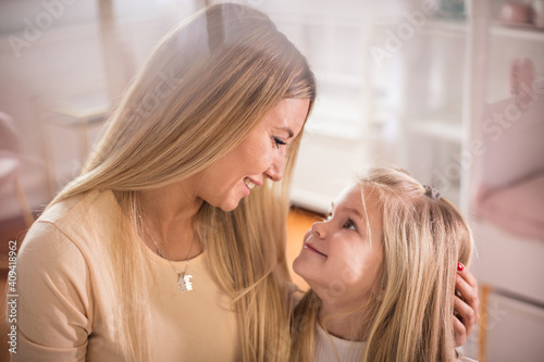 Mother and daughter in hug.