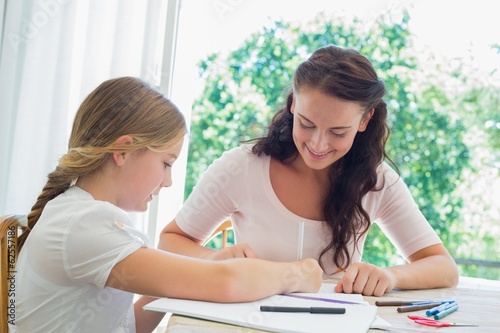 Mother assisting daughter in drawing