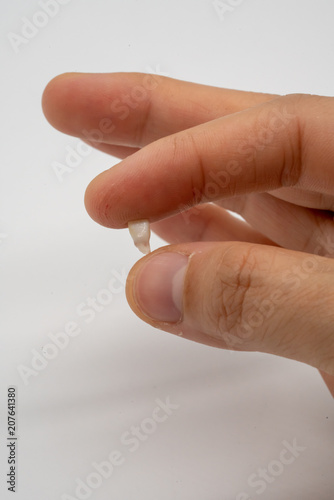 Mother hand holding milk teeth. Childhood healthcare