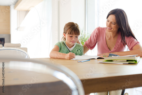 Mother helping daughter with homework