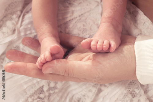 Mother holding baby foot