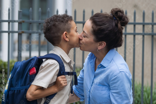 affectionate, back to school, bonding, education, embracing, female, horizontal, lifestyle, male, mother, offspring, eltern, photo, preparation, preschool, schoolboy, son, student, studying, teenage, two people, young adult, color image, happiness, leaving, people, routine, smiling, candid, care, children, home interior, real people, adult, backpack, childhood, domestic life, house
