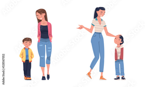 Mother Talking and Speaking to Her Son Answering Question Vector Illustration Set