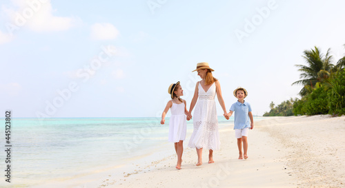 Mother with children walking on beach
