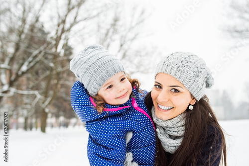 snow, girl, winter, white, fun, cold, beautiful, hat, glove, smiling, season, cheerful, park, woman, young, people, pretty, nature, attractive, outdoors, joy, foulard, forest, hood, outside, tree, playful, healthy, lifestyle, relax, leisure, family, mother, children, together, eltern, little, long hair, daughter, jacket, blue, hug, love, human relationships, cloudy, holding, walk, woolen, knitted