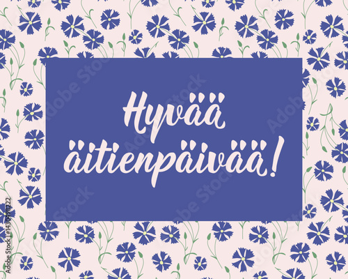 Mother's Day card. Translation from Finnish: Happy Mother's Day. Perfect design for greeting cards, posters and social media. Finnish Lettering.