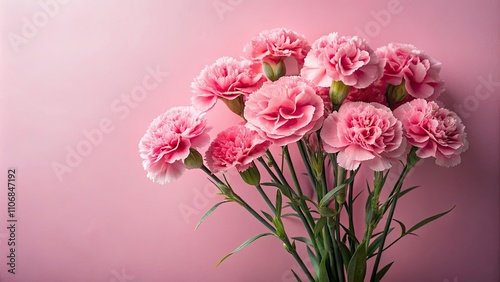 Mother's Day Greeting Card with a Beautiful Bouquet of Pink Carnations on Soft Pink Background - Perfect Floral Design for Celebrating Love and Appreciation