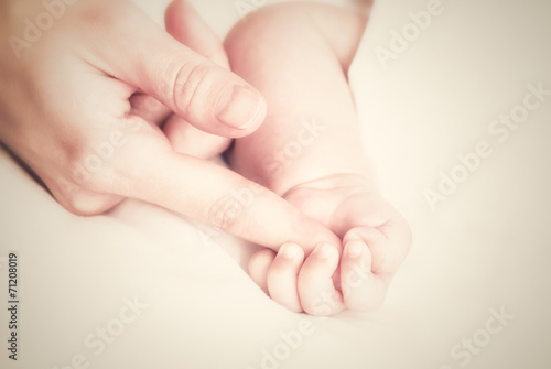 Mother's finger and baby hand