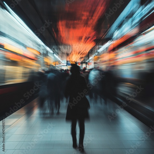 platform, commuter, people, silhouette, motion, blur, transportation, transit, underground, subway, station, crowd, public, waiting, passenger, lifestyle, travel, moving, urban, speed, rush, hours, line, system, light, colourful, modern, tile, floor, interior, indoor, perspective, train, anonymity, anonymous