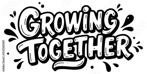 Motivational quote design featuring the phrase "Growing Together" in a bold. stylized font with decorative elements.
