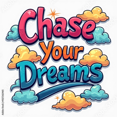 t-shirt, design, motivational, inspirational, quote, dream, chase, your, cloud, cartoon, graphic, typography, font, bold, uplifting, colourful, vibrant, white, background, vector, illustration, art, creative, positive, optimistic, success, ambition, goal, achievement, aspiration, future, hope, happy, joy