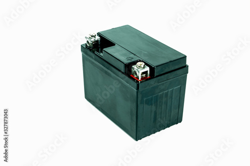 Motorcycle batteries are isolated on a white background. Motorcycle service