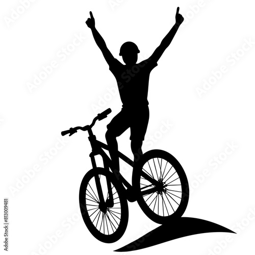 Mountain biker, A mountain Rider ride the bike on mountain vector silhouette, win, isolated white background