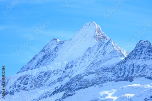 mountain First snow capped mountain peak above Grindelwald in Switzerland, chocolate