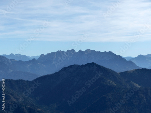 Mountain hiking tour to Auerspitze mountain, Mangfall mountain range, Bavaria, Germany