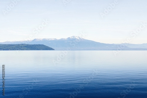 Mountain Lake Gradient: A mountain lake with water transitioning from clear near the shore to deep blue in the center.